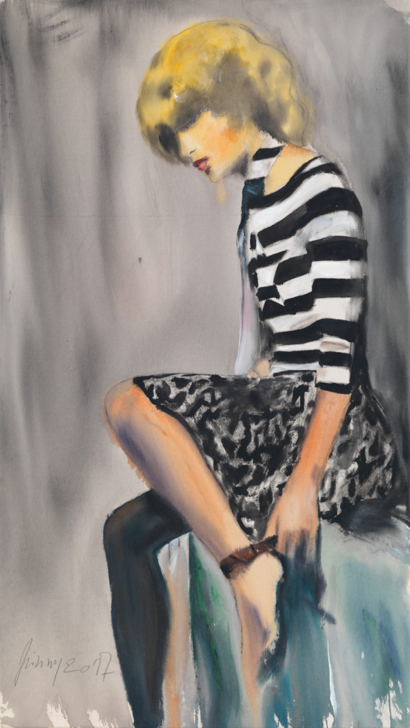 Funny van Dannen • Blondine • 2017 • Acryl auf Leinwand • signiert & datiert • 122,5 x 70 cm