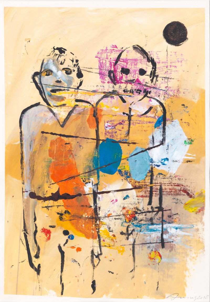 Funny van Dannen • Fehldruck - Pierrot und Colombine • 2015 • Mischtechnik auf Papier • signiert & datiert • 122 x 99 cm
