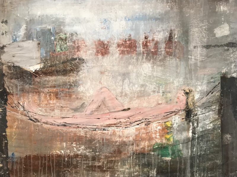 Funny van Dannen • Frau in Hängematte • ca.1990 • Mischtechnik auf Papier • signiert & datiert • 86 x 105 cm