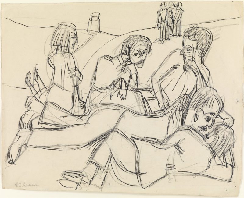 Ernst Ludwig Kirchner • Frauenbildnis • 1925 • Schwarze Kreide auf Halbkarton • Nachlass Stempel • 49,5 x 34,5 cm![]() Ernst Ludwig Kirchner • Rastende Bauern • 1922 • Tuschfederzeichnung • signiert • 40,5 x 49,5 cm