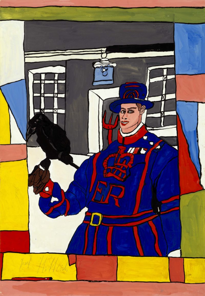 Josef Wittlich • Gardist mit Raben • ca. 1975 • Gouache auf Papier • signiert • 90 x 63 cm![]() Scottie Wilson • Fish and Birds with Greedy • ca. 1940 • Farbige Tinten auf Papier • signiert • 38 x 28 cm