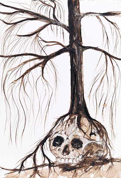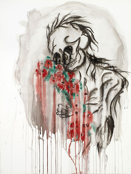 Der Tod und das Mädchen • 2013 • Keramik • 75 x 54 x 47 cm![]() Funny van Dannen • Totenschädel • 2018 • Mischtechnik auf Papier • 100 x 70 cm