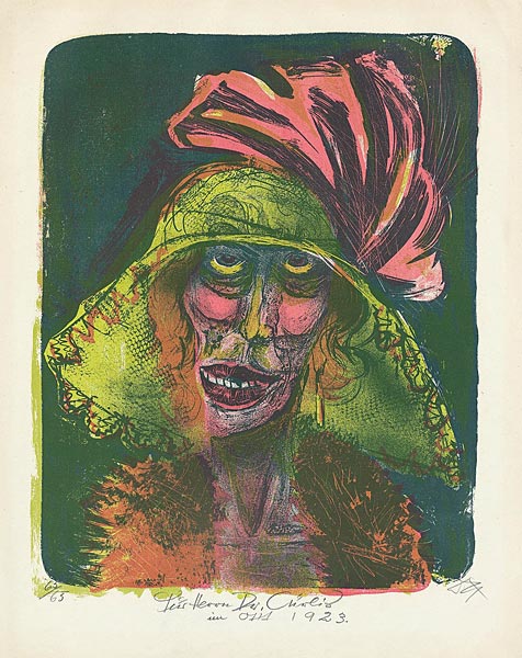 Otto Dix • Leonie • 1923 • Farb-Lithographie auf Bütten • 59 x 46,5 cm![]() Otto Dix • Nächtliche Erscheinung • 1923 • Lithographie auf Bütten • 64,8 x 50,3 cm