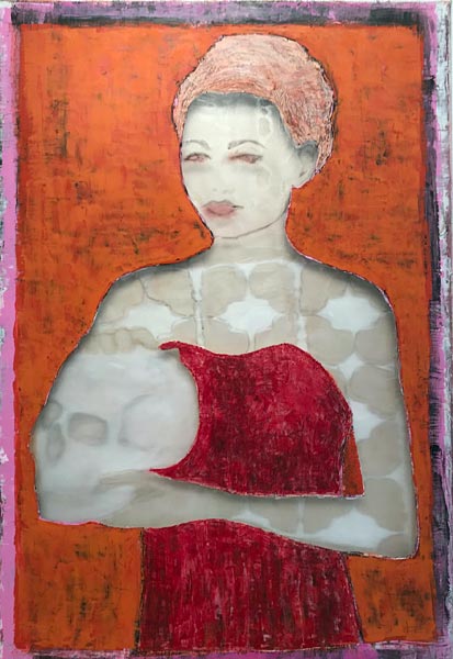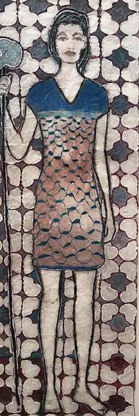 Sue Hayward • Kali • 2018 • Mischtechnik auf Leinwand & Gaze • 80 x 55 cm![]() Sue Hayward • Headhunter • 2018 • Bienenwachs / Mischtechnik auf Papier • 88 x 29 cm