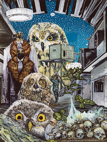 Drew Simpson • Wo Ein und Aus kollidieren • 2012 • Öl auf Holz • 30 x 30 cm![]() Drew Simpson • Schädel mit Krähe • 2012 • Öl auf Holz • 50 x 20 cm