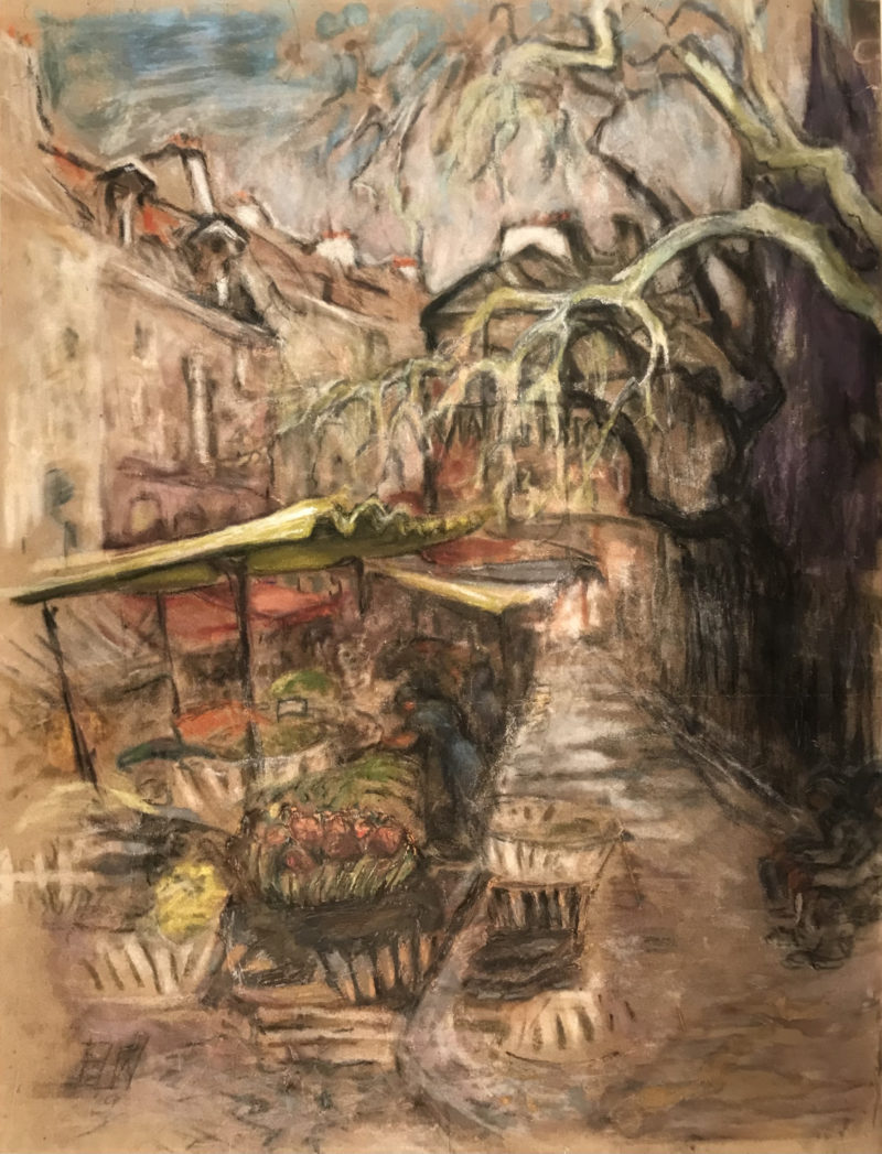 The market in Hamburg • 1929 • Pastel • monogrammed • 63 x 48 cm