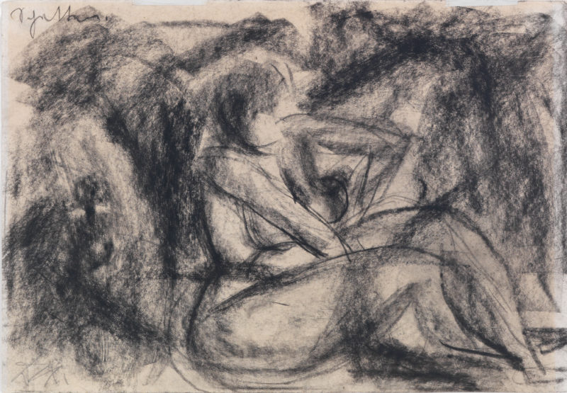Otto Dix • siting Nude • 1914 • Charcoal drawing • signed • 18 x 26,5 cm